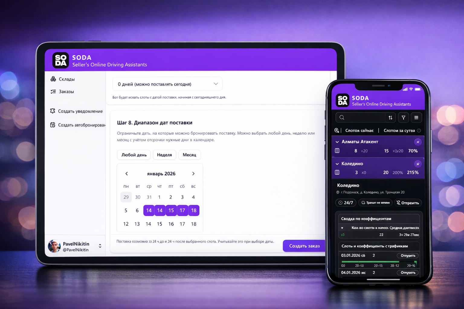 Настройте интересующий склад, параметры поставки, посмотрите достуные склады – получайте быстрые уведомления или полностью автоматизируйте бронирование! Больше не нужно ждать и следить вручную — мы мониторим слоты 24/7 и бронируем лучшие из них за секунды для вашего бизнеса.